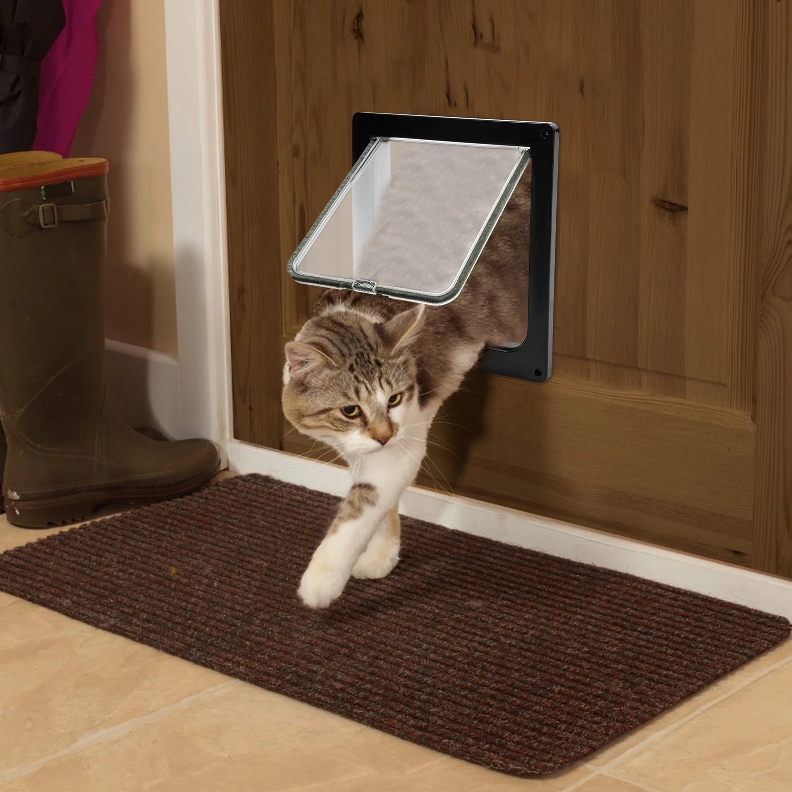 Haustierklappe für Katzen & kleine Hunde | Robuste Tür mit 4-Wege-Verriegelung